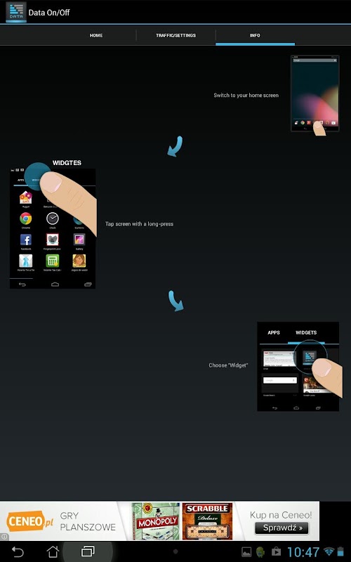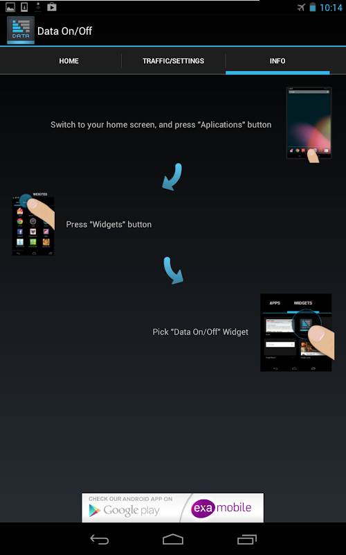 Data ON / OFF it is a simple widget, using which you can enable or disable the data transmission on your phone or tablet.