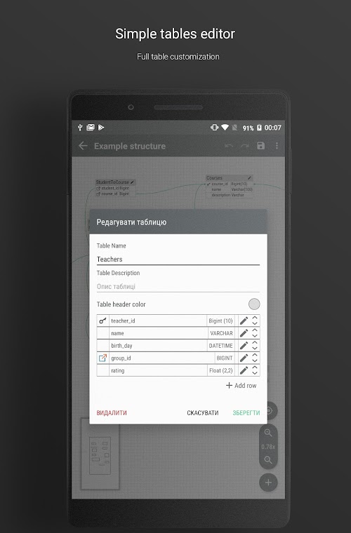 For creating SQL just tap one button and use SQL in your database.