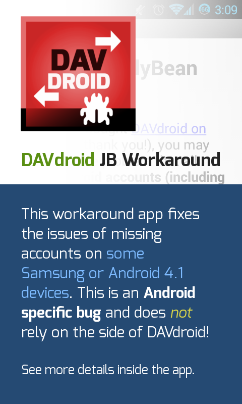 If you are looking to download other versions of DAVdroid JB Workaround Android App, We have 2 versions in our database. Please select one of them below to download.