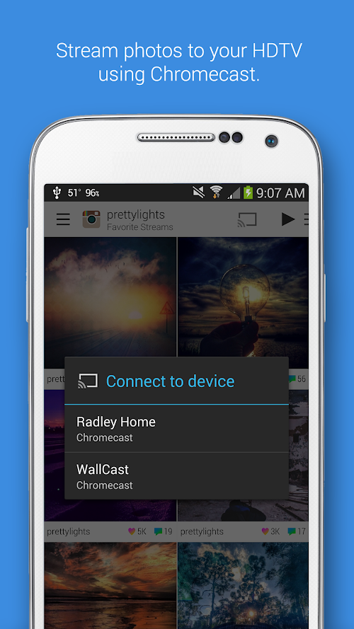 Dayframe 2.0 is the premiere photo viewer / slideshow app for Chromecast. Be the first to play photos, albums, photostreams, and playlists of albums and photostreams on your HDTV.