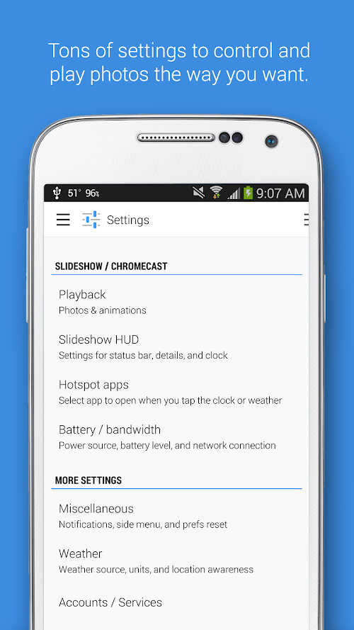 Get Chromecast photos, custom playlists, shuffle mode, advanced screensaver timer, brightness timer, app timer, local weather, and more!