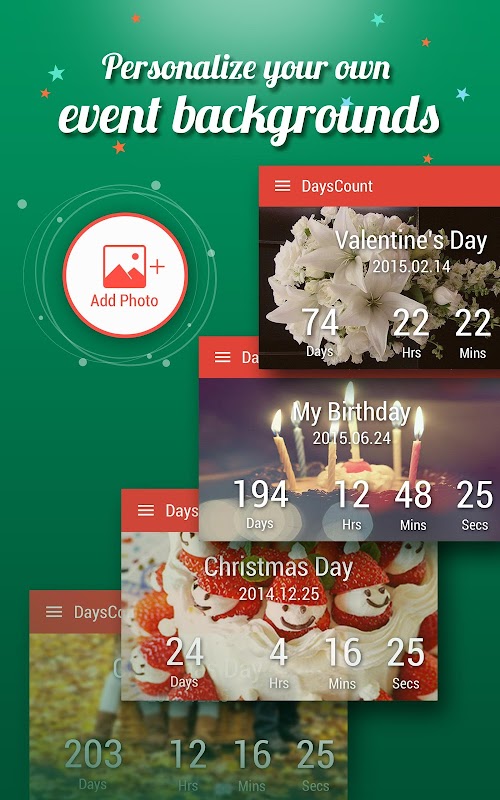 Just add an event that you have been looking forward to: birthday, anniversary, wedding, graduation, Christmas or holidays.