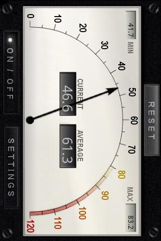 Measure volumes in your environment with this fun and well-designed app. Adjust the "trim" value to calibrate your microphone, save your settings, and adjust the response rate (slow or fast).
