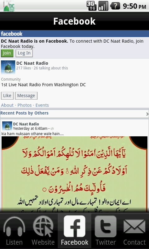 First Live Naat Radio From America, You can listen famous Naat Khawan Naats , Hamad, Munajaat, Manaqbat, in Urdu , English, Arabic, Panjabi, Pashtu. Please Send us your comments, and advices.