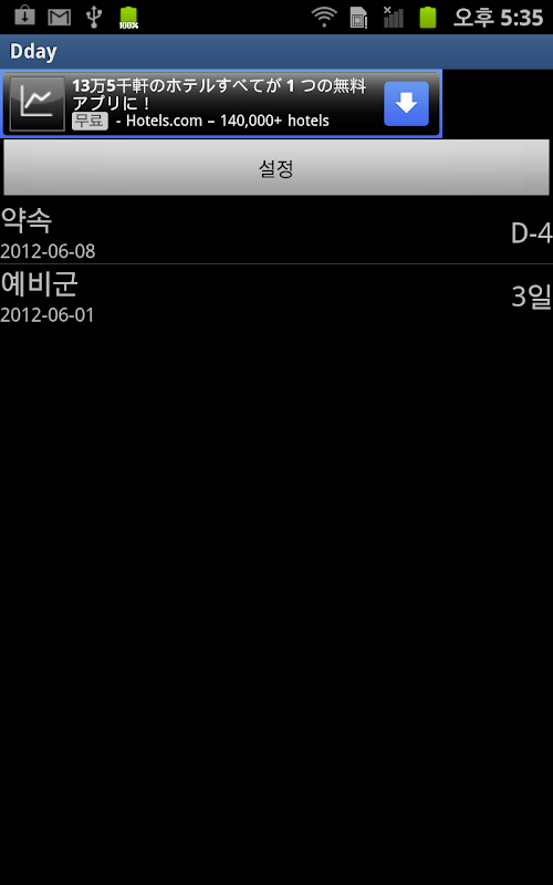 3. 설정된 날짜에 알림이 뜨고 알림창에서 Dday 알림을 선택하면 앱의 메인화면으로 들어옵니다.