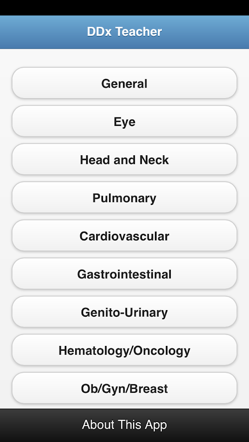 This app was developed by physicians for medical students worldwide. This is an educational tool for medical students and other health care professionals. It is not designed to provide medial advice nor to be used in the place of input from trained clinicians. The lay public should not use DDx Teacher to diagnose their symptoms.