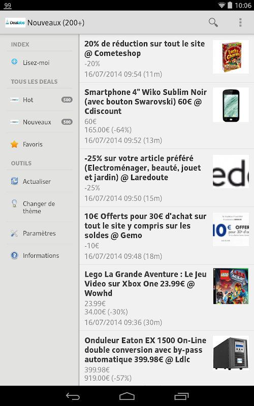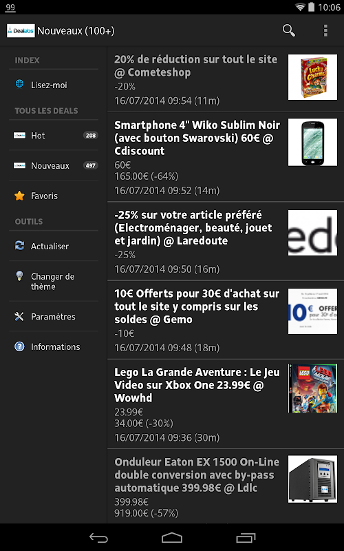 N'hésitez pas à noter l'application !Welcome to the unofficial application Dealabs. Here you will find the top deals and the new deals offered on Dealabs.com.