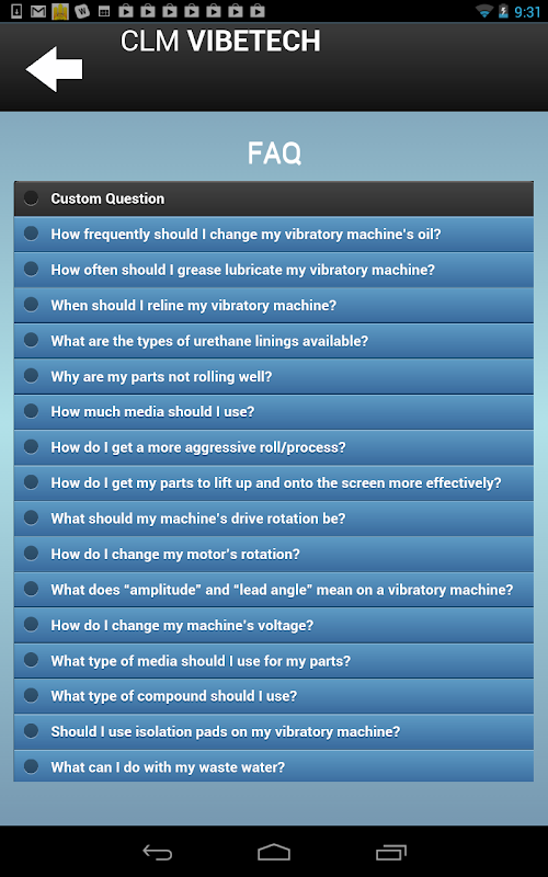 Deburring by CLM Vibetech lets you pick from Frequently asked Industry questions with a flick of your finger, get all the information you might need on your own timeframe. Have a question that is not listed add your own custom question! One of our experts will get back with you as soon as possible and help you with everything you might need.