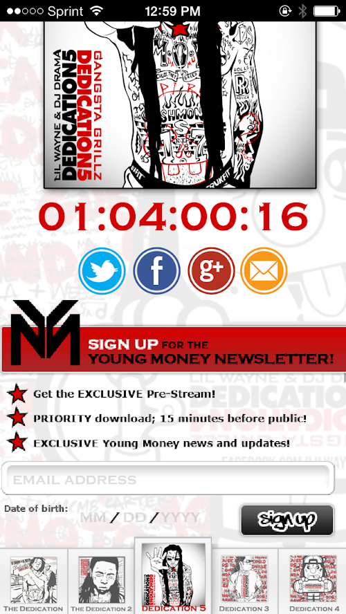 DatPiff, in association with Young Money presents the exclusive Pre-Stream and application for Lil Wayne's Dedication 5 mixtape.