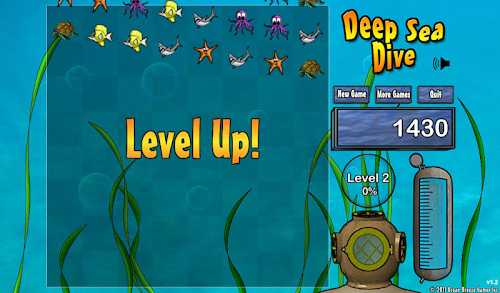 Dive into the depths of the ocean and match cute ocean dwelling creatures in columns or rows of three or more by swapping them around. Be quick as you only have a limited supply of oxygen and if you don't match enough creatures you will run out.