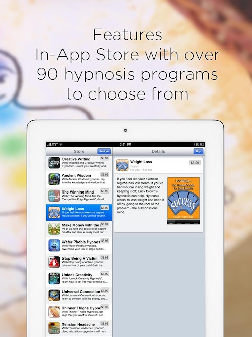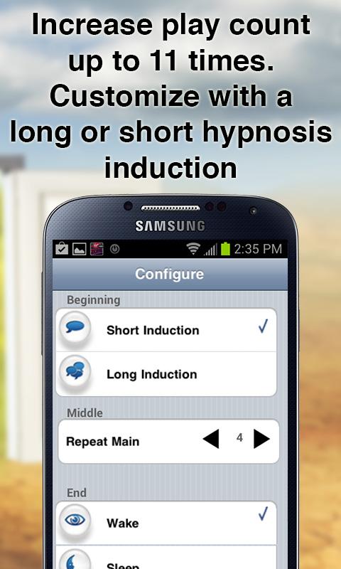 Your choice of one of three different soothing, white noise background sounds to enhance your hypnosis, or none at all