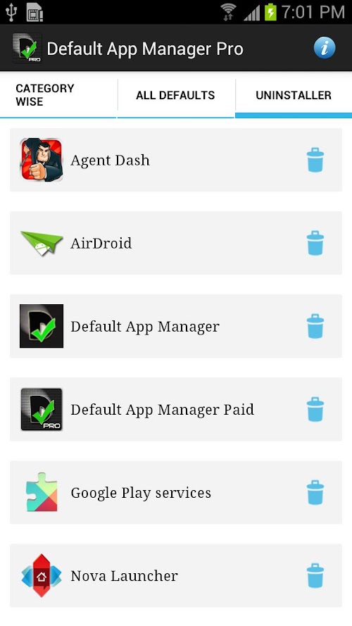 Default, Set/Clear Defaults, Uninstaller, remove apps, Android App Manager, APK uninstaller, Default
