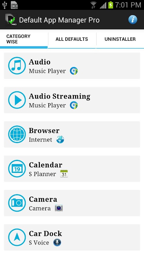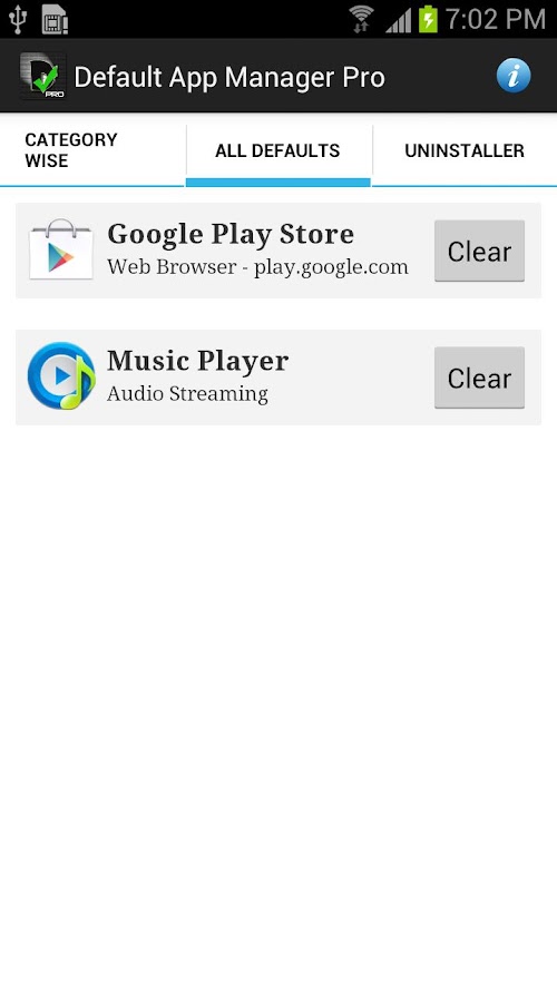 Default App Manager Pro is an Ad-Free version of one of the most unique App Managers available on the Market. It is a simple app to manage default apps for different types of actions that Android does. This app allows to you to manage for almost all the common actions.