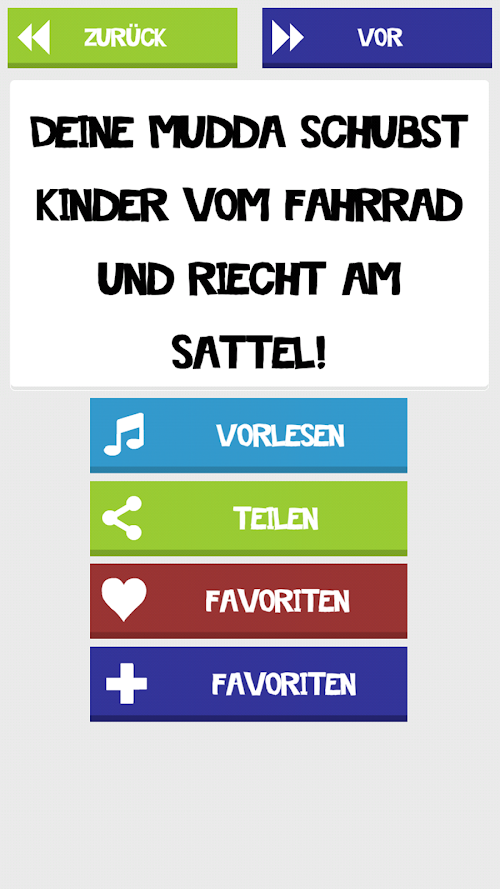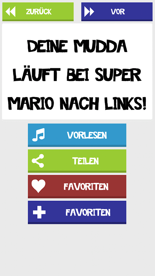 Du kannst die Deine Mudda Witze in einer persönlichen Favoritenliste speichern und diese Liste jederzeit verwalten.