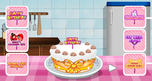 This amazing cake game starts with selecting the cake size to prepare the best cake from one of the great cake games. In the first screen you need to choose the model for the cake you are about to cook, you can choose single cake, double floor cake and three floor cake. Select the cake size, great you have selected a single base cake. Now it’s time to choose dough for cake, Fantastic’s now it’s time to give a thick surrounding layer for the cake to make the cake delicious. Next Choose topping which is made of chocolate, vanilla, strawberry and many more for the creamy top of the cake. Excellent now its time to decorate our cake with some vanilla, chocolate, cherry and many more to bake a fantastic cake. Now select the message you want to send a cake for. We have many options happy birthday, Happy Married Life, Thank You, Congratulations, Get well soon, Have a Good Day. Now it’s time for good cake presentation, select any of the dishes from the option to gift cake. And finally it’s time to wrap our delicious cake with ribbon and complete one of the best cake games. Ta da we have prepared our delicious cake now save the cake picture and send it to your loved once. they will be happy with this yummy cake. You can make and bake your cake as many times you like. Enjoy one of the best cakes games and share it with your loved ones with yummy cake. You can find ios version at https://itunes.apple.com/us/app/delicious-cakes-free/id1128196030?mt=8
