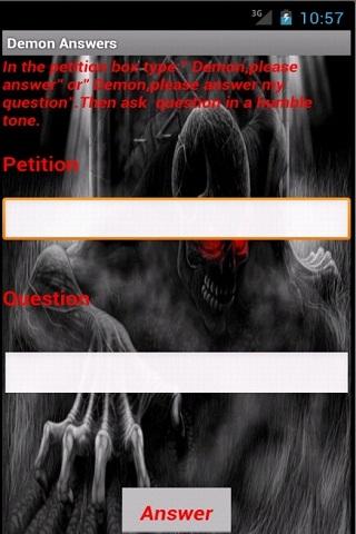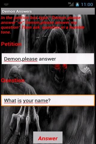Demon Answers helps you to play tricks on your friends ,family members or everyone.Tell them that Demon or Ghost is psychic and can answer any question that they already know the answer to or sometimes answer questions about future. Have them choose a question, type it in, and Demon will amaze everyone in the room. But you alone know the key to Demon's success.