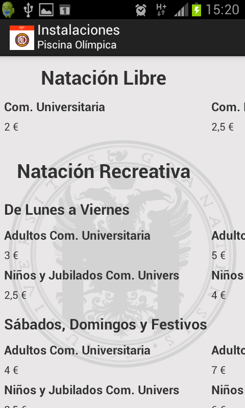 DeportesUGR es una aplicación que permite acceder a la información de la página web del Centro de Actividades Deportivas de la Universidad de Granada. Con ella podrás: