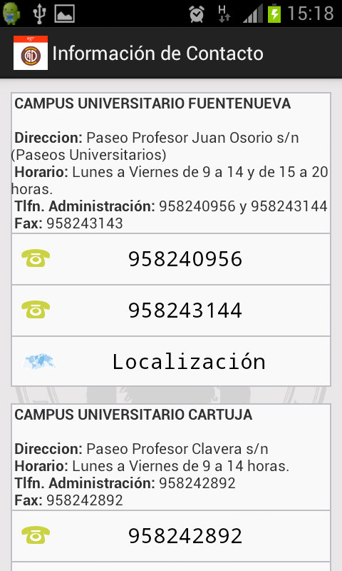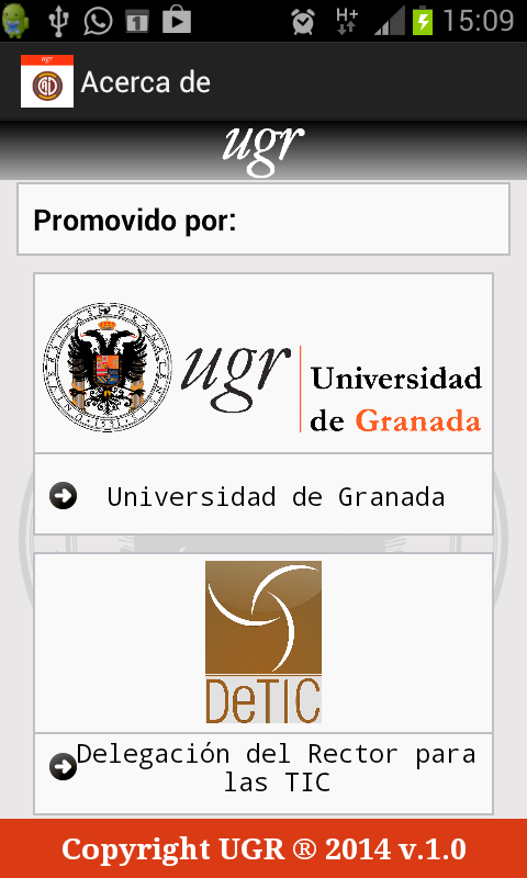 The University of Granada on the website includes a listing http://apps.ugr.es major mobile applications that are developed within the institution and distributed for free. The applications are intended for teaching, research or management purposes, and are intended to inform and improve the services offered from the UGR.
