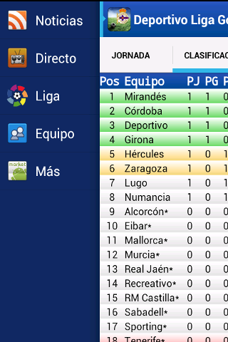 Deportivo Liga Gol es una aplicación en la que encontraras noticias, retransmisiones en directo, datos de la liga y de la plantilla.