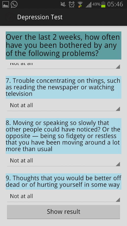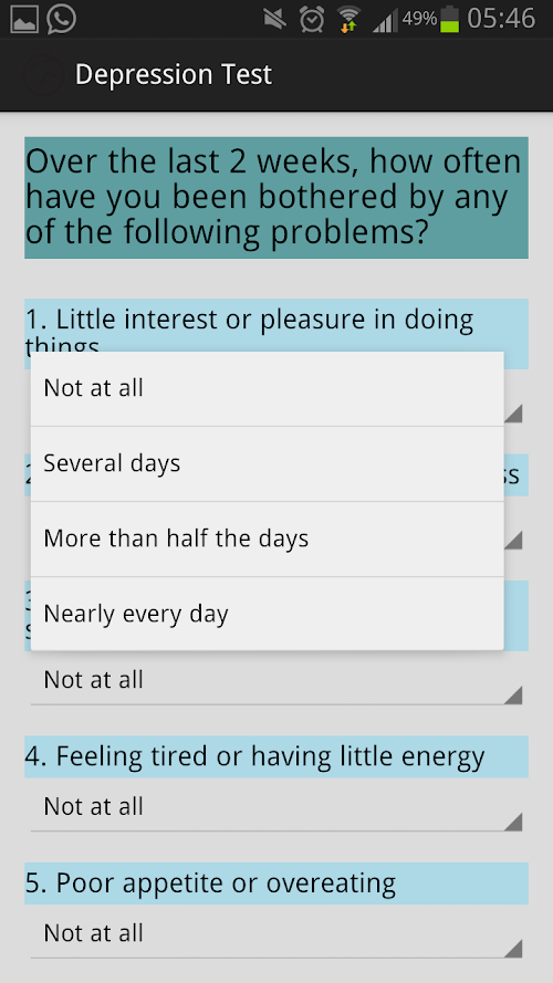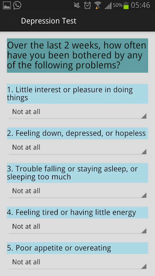 If you are looking to download other versions of Depression Test Android App, We have 2 versions in our database. Please select one of them below to download.