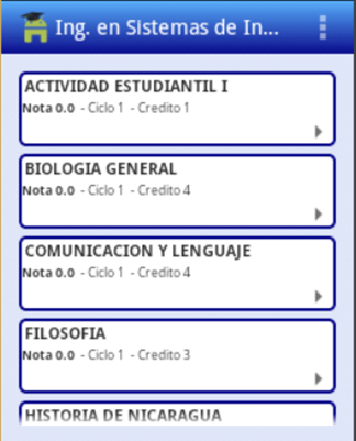 Esta aplicación no tiene acceso al banco de datos de notas de la UNAN-León.This application is used to display the most recent plan academic careers Computing Department Unite-León. Besides display allows you to enter the final grade you got in each curricular component to remember when needed.