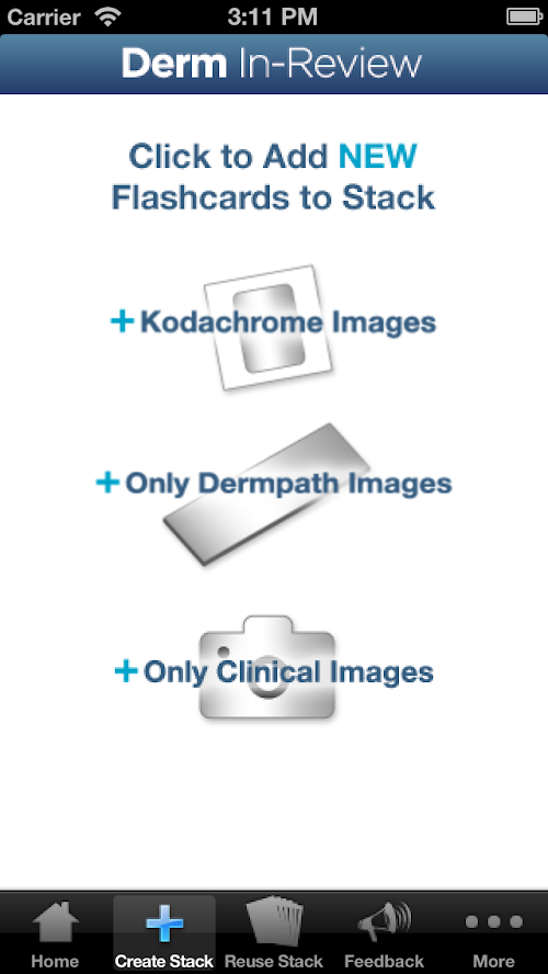 • Review only dermpath flashcards, only clinical flashcards, or a combined stack of both