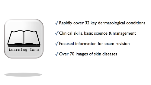 The application incorporates ‘Dermatology: a handbook for medical students & junior doctors’. This handbook was written by Dr Nicole Yi Zhen Chiang and Professor Julian Verbov and forms the ‘learning zone’ of the smartphone application.