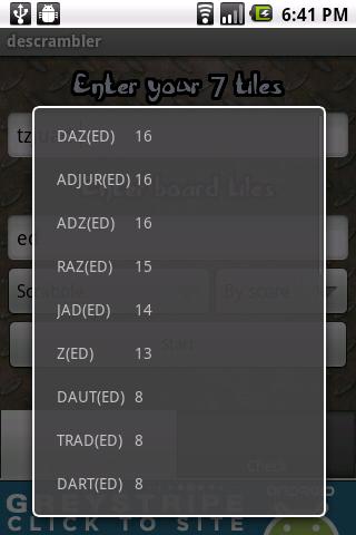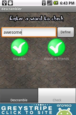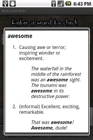 Descrambler also comes with a word check function where you can easily verify that a word really exists. This is great for settling disputes when your know-it-all partner invents crazy words and pretends they're real!
