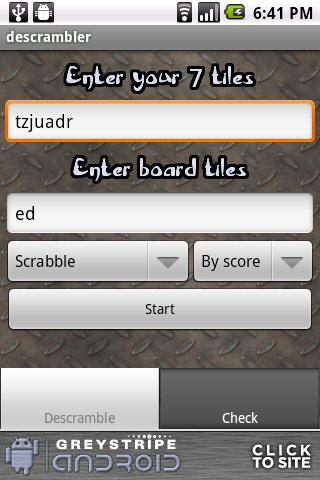 Do you love the SCRABBLE or Words With Friends crossword game? Do you struggle sometimes to find the best word to use? Don't worry, it's a common problem to be linguistically challenged. Let Descrambler come to the rescue! Whether you're a tournament pro wanting a quick word check, or just a rookie looking to hone your skills and learn new words, Descrambler is the ultimate resource for players of all skill levels.