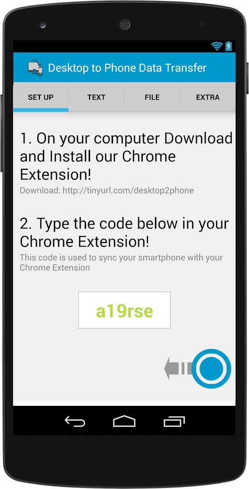 In order to use this app you need to install a Chrome Extension that communicates with your phone.