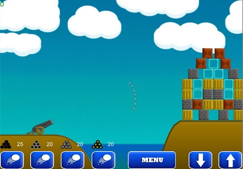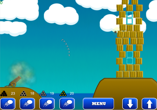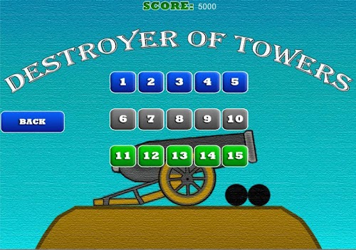 Destroyer of towers - new game,which developed Russian team developer's "Novomer".It's game, which won't get tired.Your goal - to destroy the tower and push in water. Shoot from cannons , destroy towers, get points for it , procuring shells using accumulated points .Each shell has its own peculiarity , which is heavier than the projectile , which is faster , which is discontinuous , and what is more discontinuous.