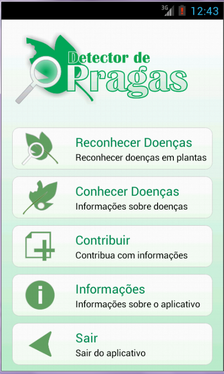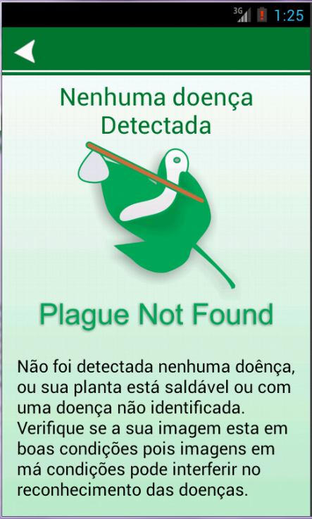Corresponde a um software com programação na linguagem Java e com algoritmos de visão computacional para pesquisa sobre detecção de pragas através de reconhecimento de padrões em imagens das plantas. É importante ressaltar que este aplicativo deve ser utilizado junto com um especialista para poder realmente fazer a análise e verificar a existência ou não da doença, ele indica a suspeita de doença, onde lembrando que não se responsabiliza pelo combate à mesma, onde somente um especialista poderá indicar a existência real da doença e a forma em como combatê-la.