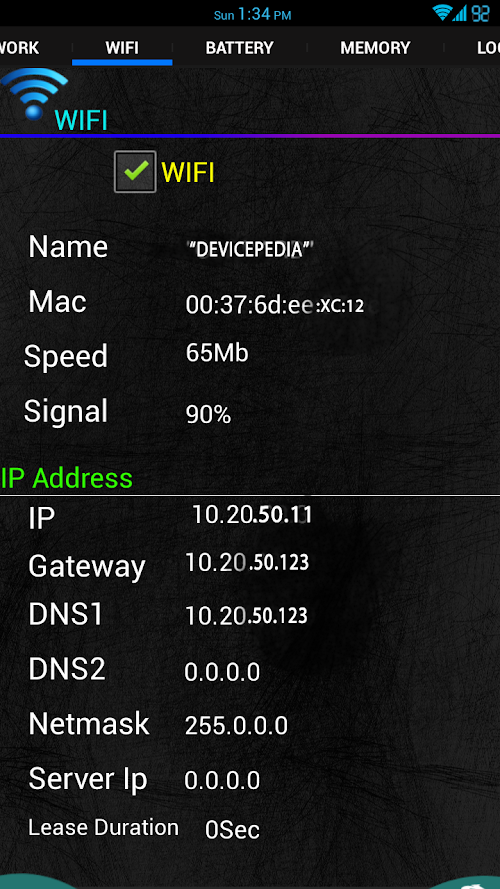 * WiFi Info : - Turn WIFI ON/OFF. It also gives information about mac address, speed, signal strength, all Details of IP Address etc. we can directly open Ip setting and WiFi setting in just one touch.