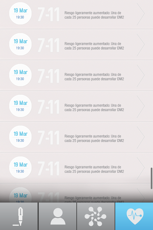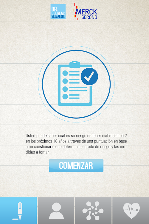 Con Diabetes su riesgo, aprenderá sobre los factores de riesgo y mejorará sus hábitos de control.Their risk Diabetes is a free application that calculates, in an easy and intuitive, the risk of developing type 2 diabetes mellitus in the next 10 years.