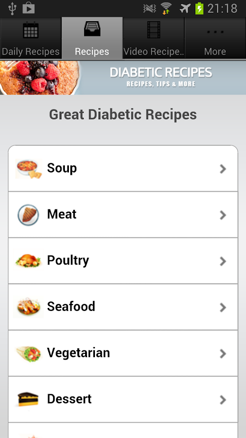 ...and lots more. Now you can save a lot of time and effort and find that perfect recipe you've been looking for! No more need to flip through dozens of cookbook or magazine pages. Everything you need is right here in this easy-to-use app. These recipes are tested and true and won't let you down. Easy and tasty Diabetic Recipes are just a FREE download away!