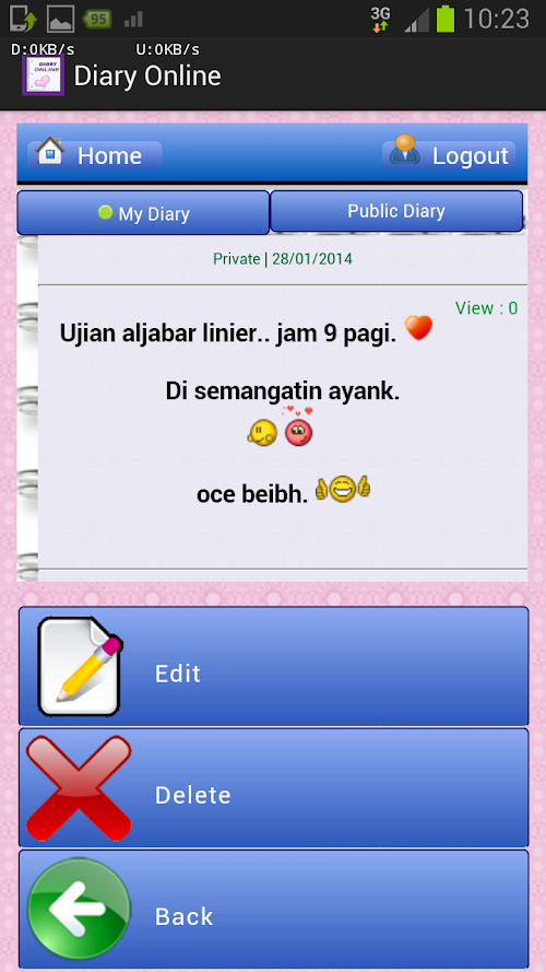Tags : girs diary, cute diary, notes online, note online, paper online, memories book, buku catatan online, notepad, life diaryNow you can write your diary or notebook with online access, easy for use. And guide the data is permanently in the database online diary.