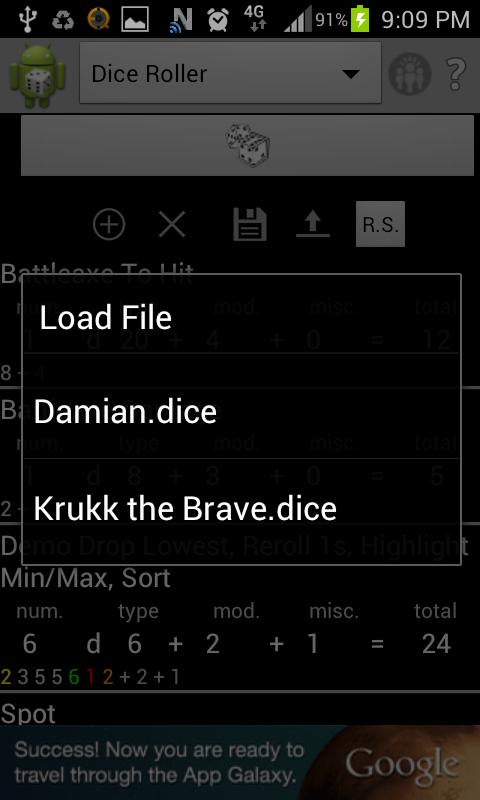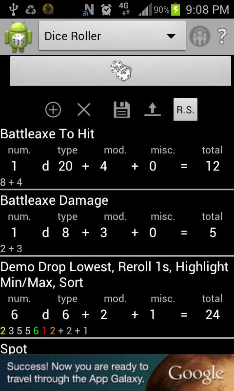 You can name all of your rolls, and save roll sets to a file for later use! Set up common rolls for your game or character once and you'll never have to set them up again.