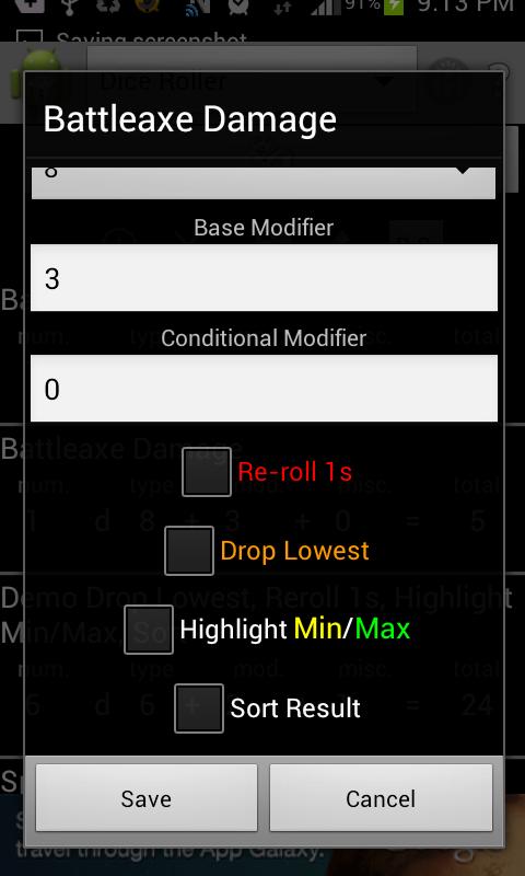 You can name all of your rolls, and save roll sets to a file for later use! Set up common rolls for your game or character once and you'll never have to set them up again.