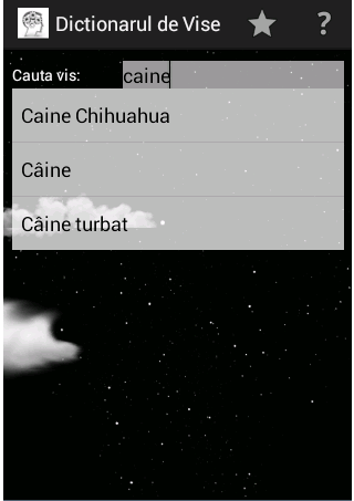 * fara publicitate in aplicatie! * Dictionary of Dreams site offline http://www.DictionarulDeVise.com properly.