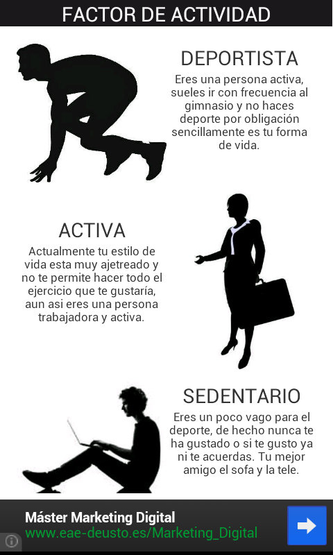 ¡Date prisa! El verano se acerca y tendrás que quitarte la ropa, si te planteas que podrías tener un cuerpo mejor ¡no desistas! con esta aplicación tendrás una dieta especifica para ti. Descargate Dieta Fitness II selecciona tu sexo, tu constitución, tu altura, tu factor de actividad y tendrás en un segundo la solución para este verano. Hurry! Summer is coming and you have to take your clothes, if you're thinking you might have a better body does not give up! with this application you will have a specific diet for you. Download Diet Fitness II select your gender, your build, your height, your activity and will factor in a second solution for this summer.