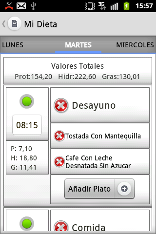 - Creación automática de dieta basada en edad, sexo, IMC y objetivos de usuario.