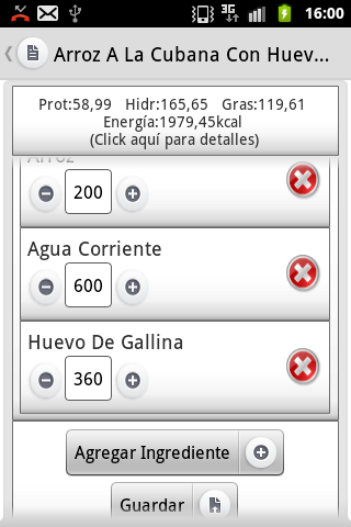 - Más de 700 alimentos con sus valores nutricionales