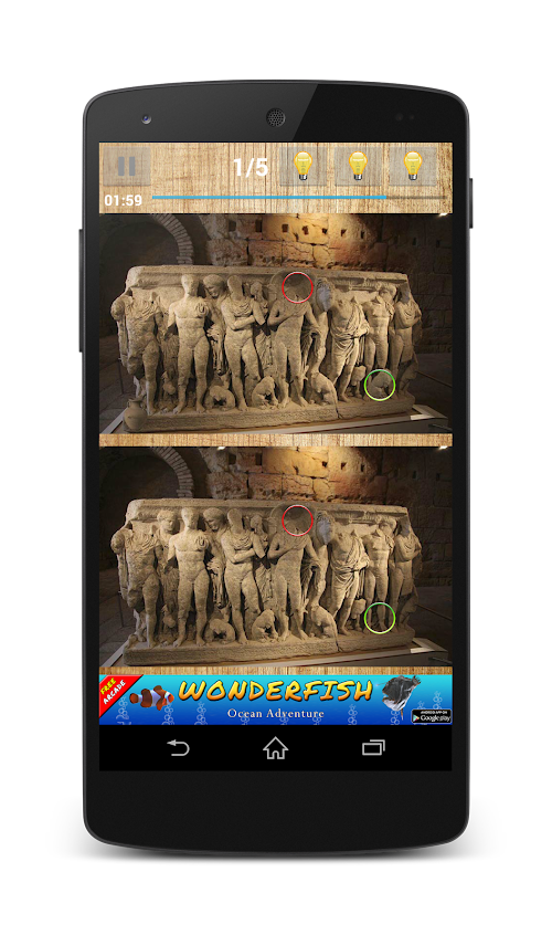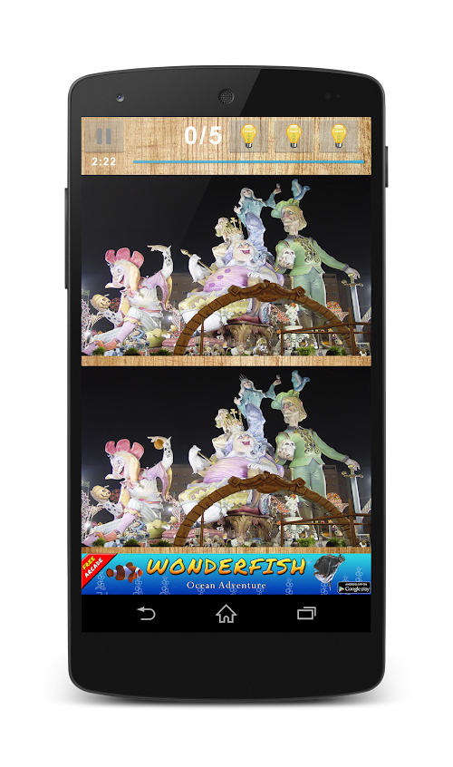 Differences 1 Free Games HD is the classic game to which ever we have all played. In this version for smartphones and tablets you have to find the differences by touching them with your finger. If you fail to find them you will lose time or you will lose a life. In total there are 5 hidden differences in each scenario. All images are HD pictures and they will look great in your tablet!