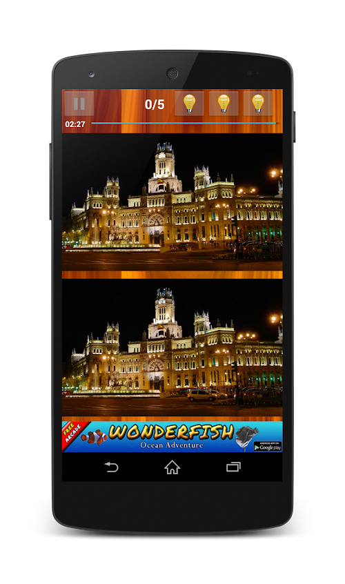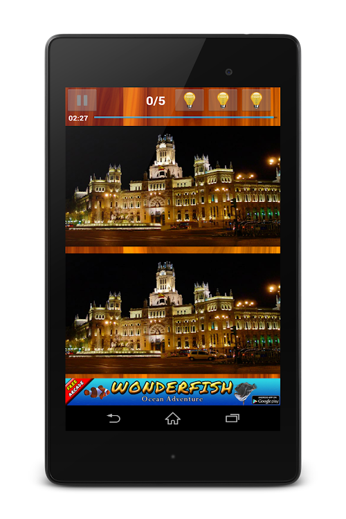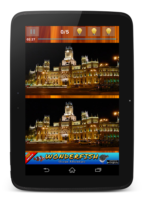Differences 3 Free Games HD is the classic game to which ever we have all played. In this version for smartphones and tablets you have to find the differences by touching them with your finger. If you fail to find them you will lose time or you will lose a life. In total there are 5 hidden differences in each scenario. All images are HD pictures and they will look great in your tablet!