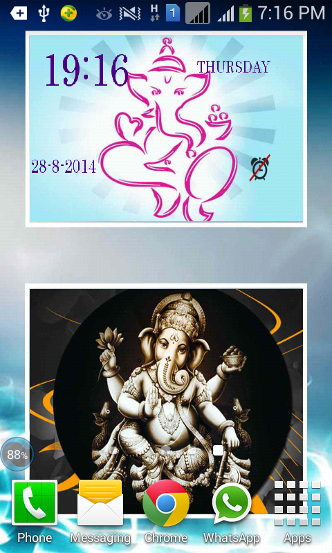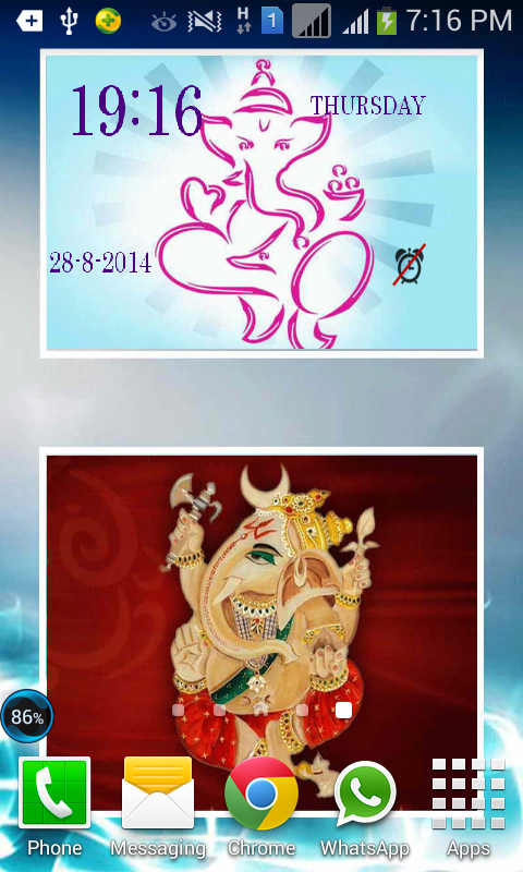 “Digital Clock Ganesh LWP” is Live wallpaper App for your android phone. It has different backgrounds to choose from and by default our Ganesh photo will be changed every minute and you can also customize the interval.