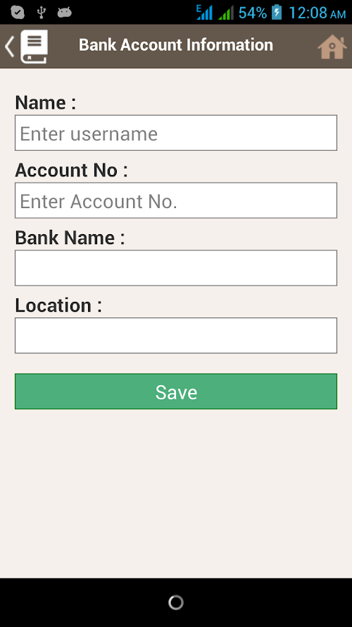 2. Account Information: This feature contains all the account information like account holders name, account number, banks name, location of the bank.