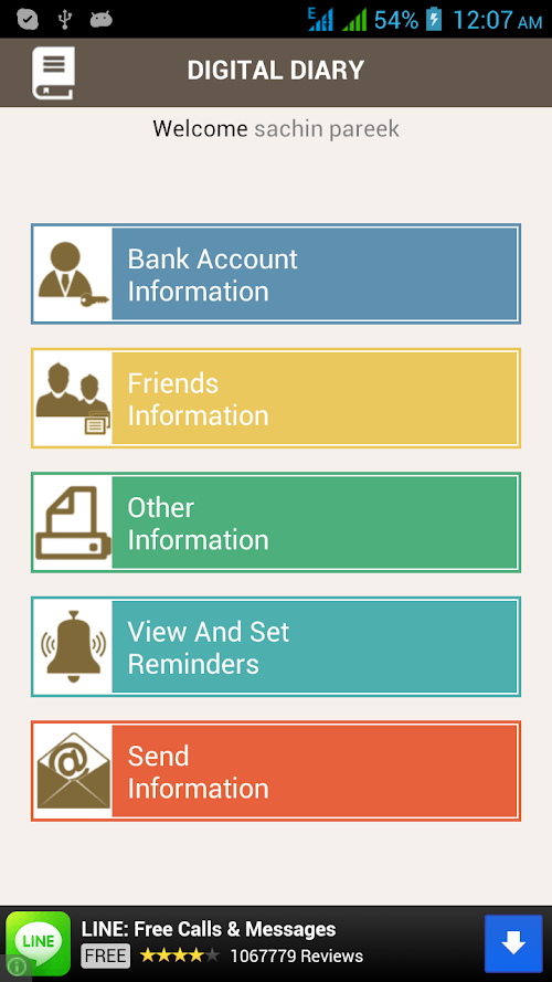 Digital Diary allow you to keep all your important information safe. Features are as follows:
