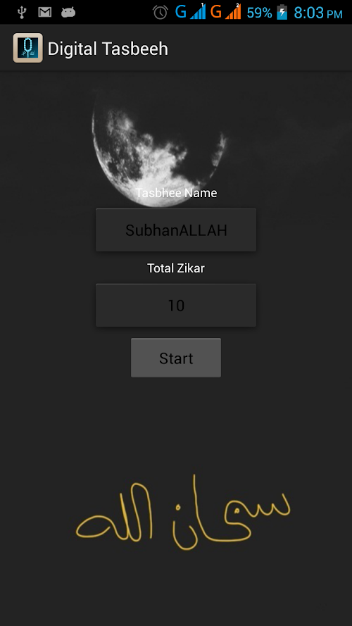 This application allow user to write the tasbeeh name and also the limit how much tasbeeh user want to read..