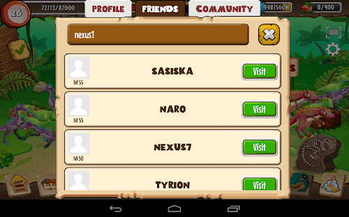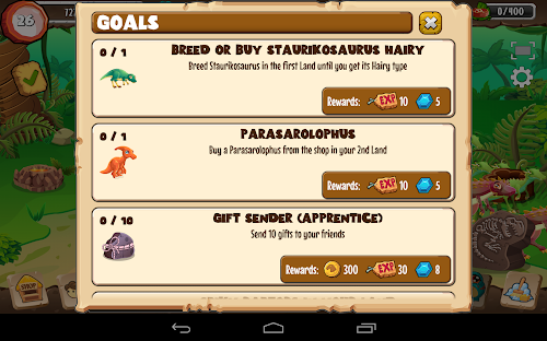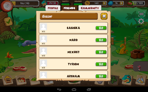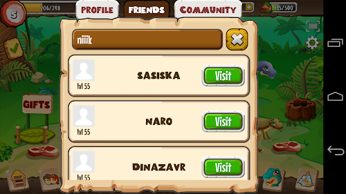 Visit your friends lands and help to take care of their dinos. Leave gifts and messages for them and accept gifts from them. Complete goals, get rewards and advance in game.