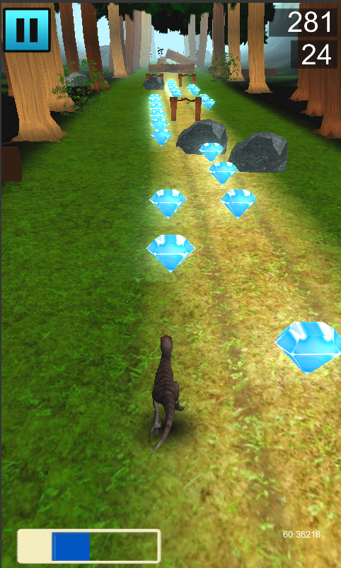 Run through the Jurassic era's jungle, avoid the obstacles, collect points, don't let the Tiranosauros get you.